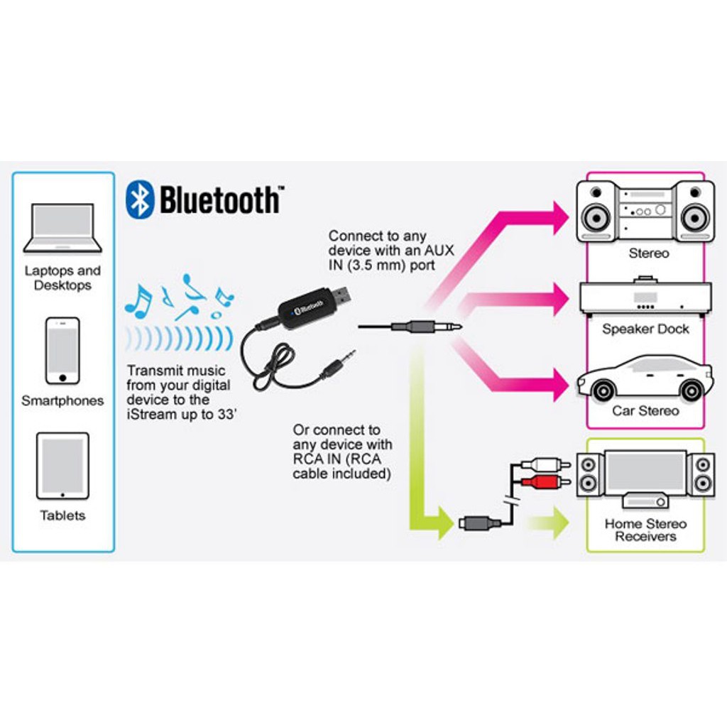 - Thiết bị nhận Bluetooth thiết kế khá bắt mắt nhỏ gọn với vỏ nhựa sáng bóng rất sang trọng- Với ngõ ra âm thanh stereo trung thực không bị suy hao so với bản gốc từ thiết bị phát