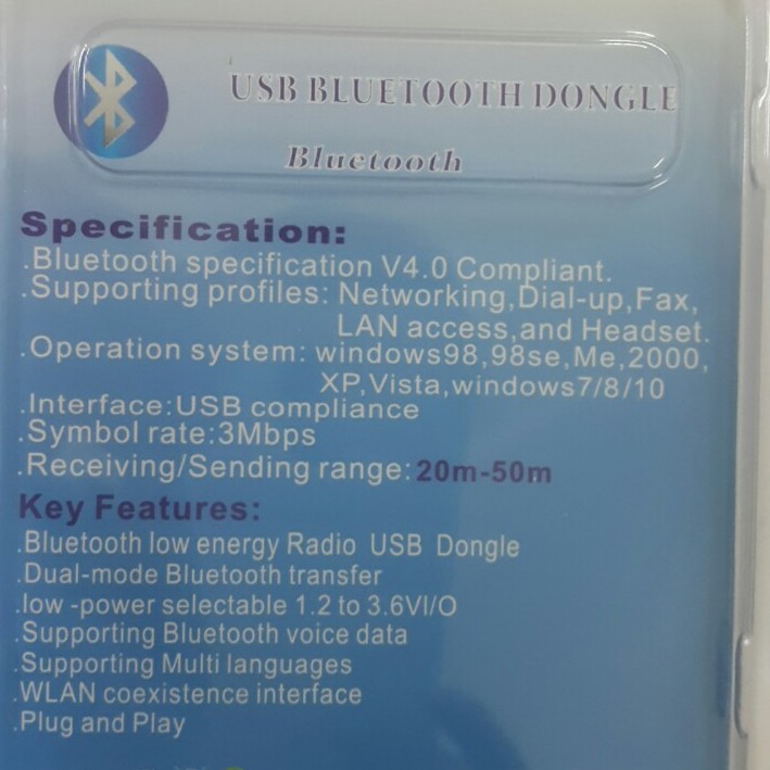 USB Bluetooth Dongle 4.0 dùng cho máy tính (dùng cho máy tính chạy hệ điều hành Windows - dùng để kết nối PC với các thiết bị bluetooth khác như tai nghe bluetooth, loa bluetooth, chuột bluetooth, bàn phím bluetooth, tay cầm game... )Quý khách vui lòng Đánh giá 5 sao để được mua nhiều hàng CHẤT LƯỢNG TỐT với GIÁ SỈ