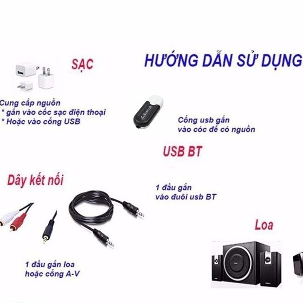 Công dụng: nâng cấp tính năng Bluetooth cho các loa mini, loa di động và các loại loa vi tính khác không có bluetooth
