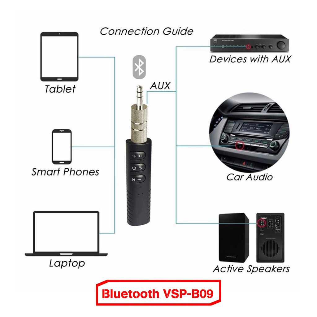 ★ VSP-B09 Là Bộ chuyển đổi xe hơi Bluetooth 4.1 di động - Với bộ chuyển đổi âm thanh nổi nam sang âm thanh 3,5mm, âm nhạc không dây của bạn từ điện thoại thông minh hoặc máy tính bảng có thể được truyền đến âm thanh xe hơi của bạn.