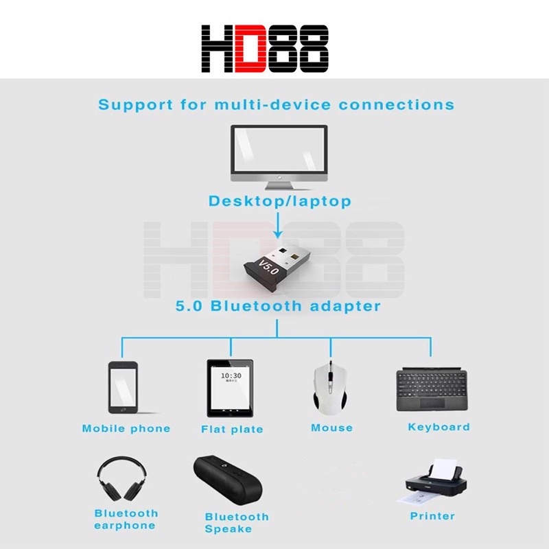 USB Bluetooth Dongle 5.0 giúp Laptop PC thu phát sóng bluetooth - HD88