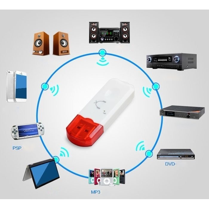 Giới thiệu sản phẩm Bộ thu âm thanh không dây Bluetooth DongleUSB Bluetooth Dongle có khả năng biến thiết bị thường không có bluetooth thành thiết bị có bluetooth, đơn giản lại dễ sử dụng. Ví dụ như bộ loa vi tính của bạn không hỗ trợ bluetooth, khi cắm usb bluetooth này vào, loa vi tính này có thể tiếp nhận các tín hiệu bluetooth từ điện thoại/máy tính bảng. Tường tự bạn có thể áp dụng với các loa nghe nhạc, laptop, loa kéo, dàn âm ly, hoặc ngay cả trên xe hơi.