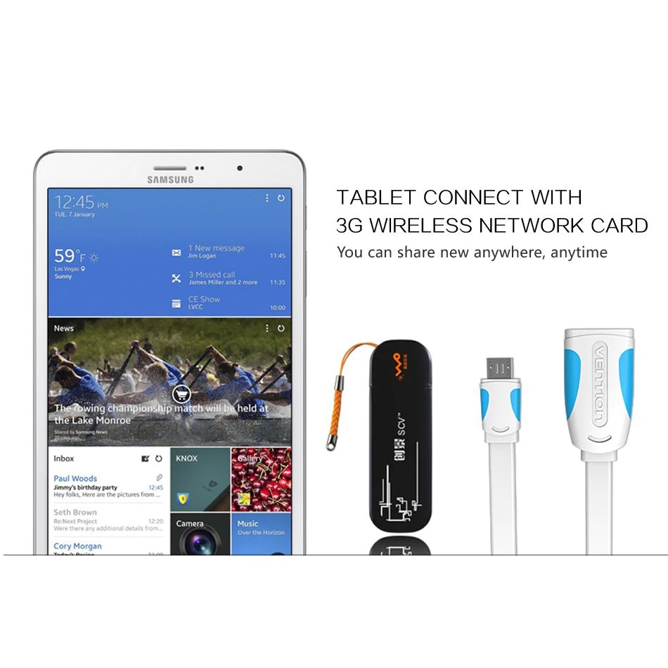 - Cáp OTG Vention cổng Micro cho phép người dùng tận dụng triệt để các tính năng hấp dẫn của một thiết bị hỗ trợ OTG như điện thoại, máy tính bảng. Nhờ vào tính năng OTG, người dùng có thể kết nối chuột, bàn phím, thẻ nhớ USB, USB 3G với thiết bị di động để trải nghiệm những tính năng hấp dẫn, bền bỉ và linh hoạt.