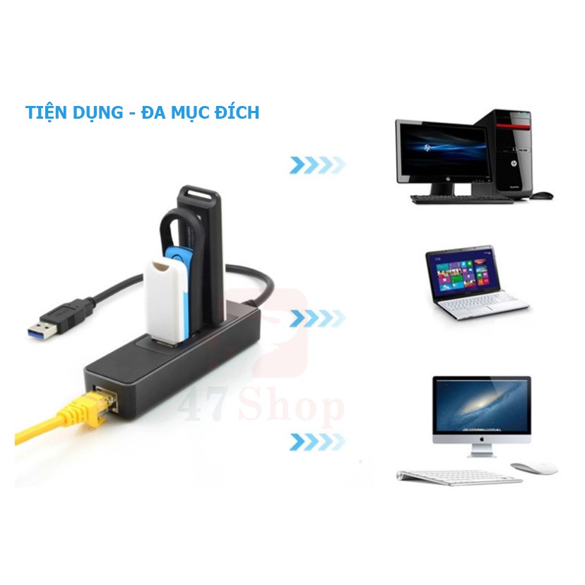 Máy tính & Laptop > Phụ Kiện Máy Tính > Bộ chia cổng USB & Đọc thẻ nhớ || USB HUB 1 Ra 3 Cổng USB 3.0 Kèm 1 Cổng LAN 10/100/1000 Mbps - Tương thích Mibox, MAC OSCòn hàng