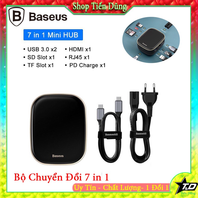 Máy tính & Laptop > Thiết Bị Lưu Trữ > USB & OTG || Bộ USB Hub Baseus 7 in 1 Type C ra HDMI USB 3.0 SD TF RJ45 hỗ trợ sạc PD 60W cho Macbook, Laptop, Điện ThoạiCòn hàng