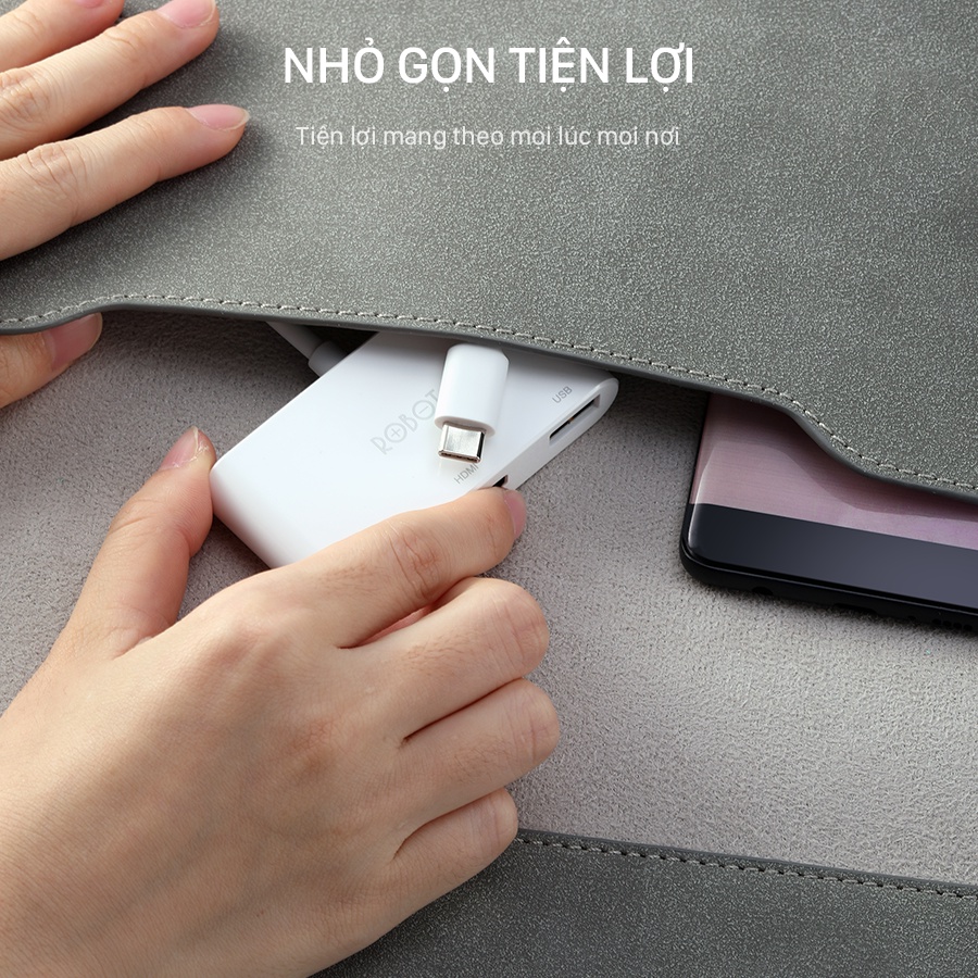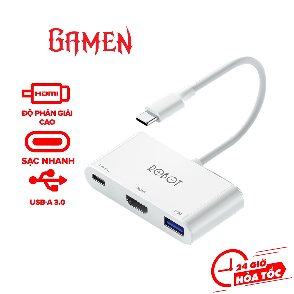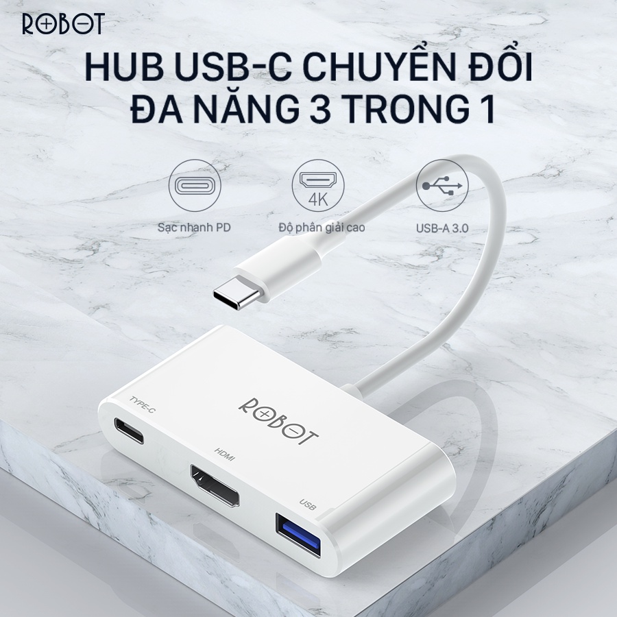 HUB CHUYỂN ĐỔI TYPE-C ĐA NĂNG 3 IN 1 TYPE-C/ HDMI/ USB ROBOT HT430 KẾT NỐI NHIỀU THIẾT BỊ LAPTOP, MÁY CHIẾU, TVSản phẩm chính hãng ROBOT