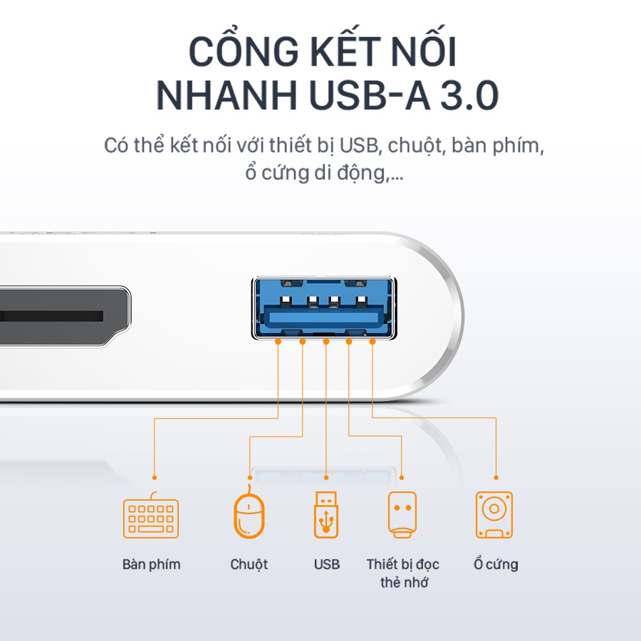 - Cổng kết nối USB 3.0 cho phép kết nối với các thiết bị ổ cứng di động, chuột, bàn phím, USB,...