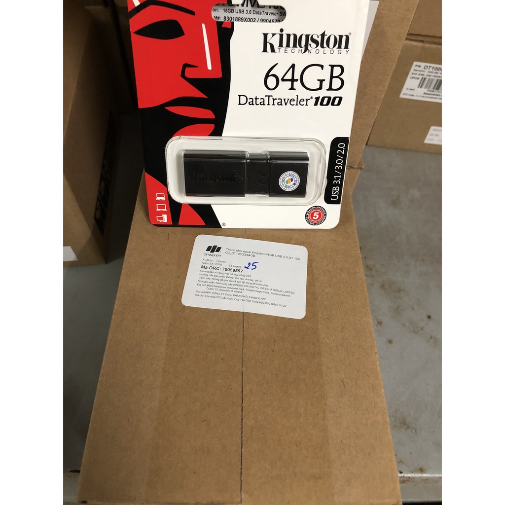 Máy tính & Laptop > Thiết Bị Lưu Trữ > USB & OTG || USB Kingston 3.0 DT100G - 64G - Chính hãng FPTCòn hàng