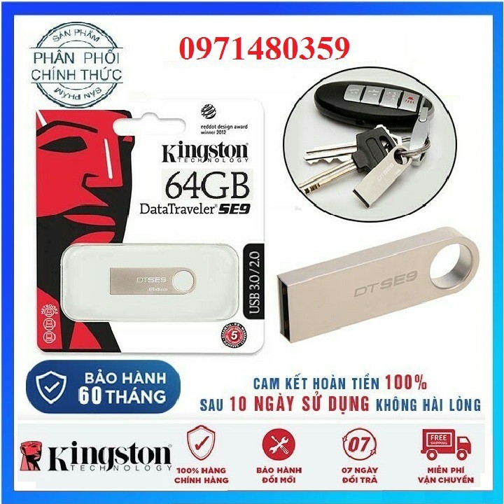Usb Kingston 64gb/32gb/16gb DTSE9 2.0, thiết kế nhỏ gọn, vỏ kim loại chống nước