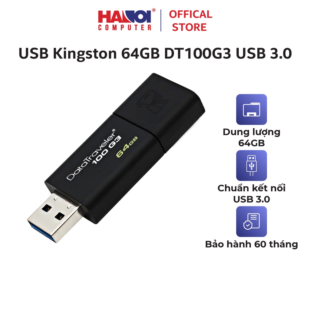 Máy tính & Laptop > Thiết Bị Lưu Trữ > USB & OTG || USB Kingston 64GB DT100G3 USB 3.0 thiết kế nhỏ gọn, tiện dụngCòn hàng