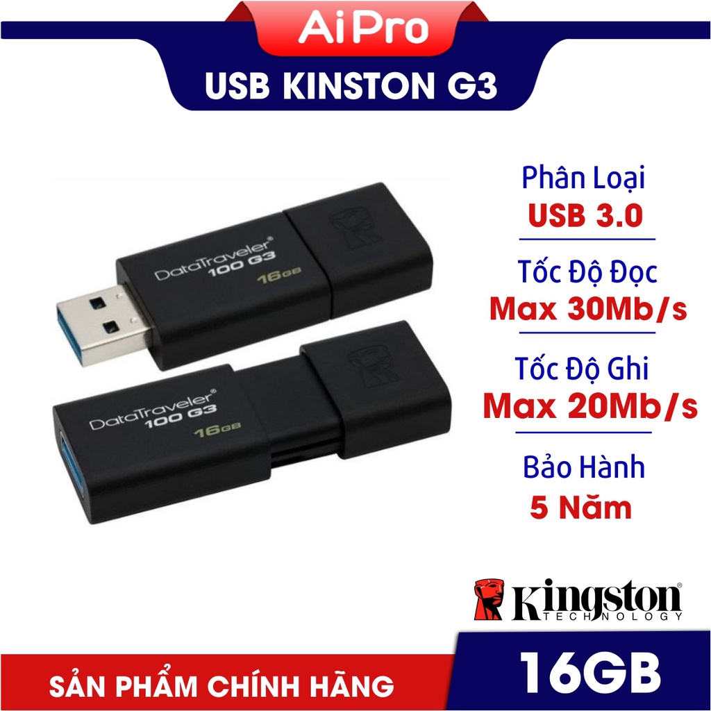 Máy tính & Laptop > Thiết Bị Lưu Trữ > USB & OTG || USB Kingston DT100G3 16GB - USB 3.0 - Hàng nhập khẩu - BH 5 NămCòn hàng