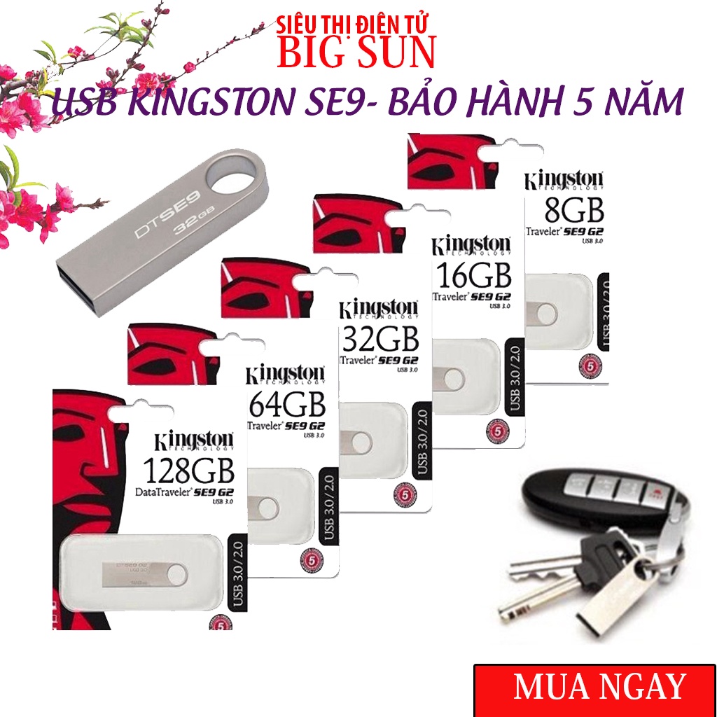 SHOP: SIÊU THỊ ĐIỆN TỬ BIGSUN XIN GIỚI THIỆU SẢN PHẨM:USB 64Gb/32Gb/16Gb/8Gb/4Gb/2Gb SE9 USB kingston 2.0 chính hãng, hàng zin- Bảo hành 5 năm
