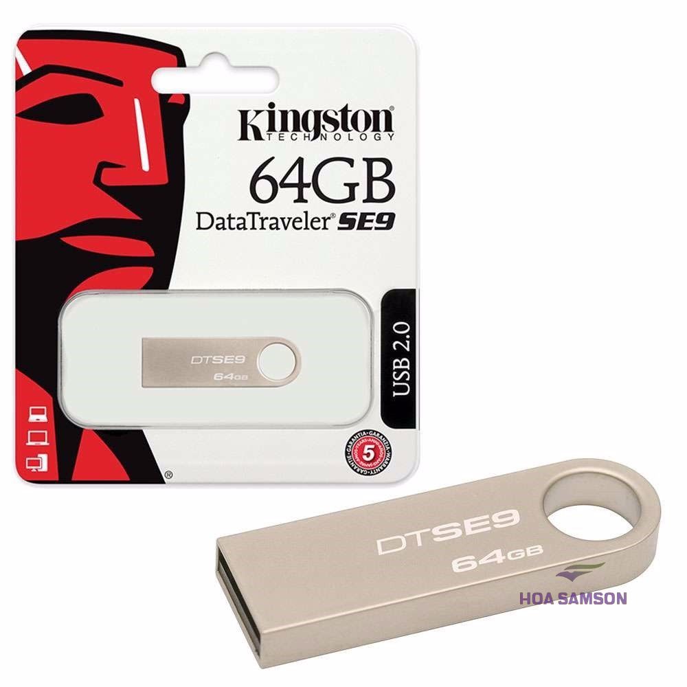 - USB Kingston siêu mỏng với Tính năng đáp ứng phong cách cho người dùng di động với Ổ USB Flash DataTraveler SE9 (DTSE9) mới. Vỏ kim loại siêu mỏng, kiểu dáng đẹp có chỗ móc chìa khóa được tích hợp sẵn để dễ dàng đính kèm vào ba lô, ví, ví hoặc keychain