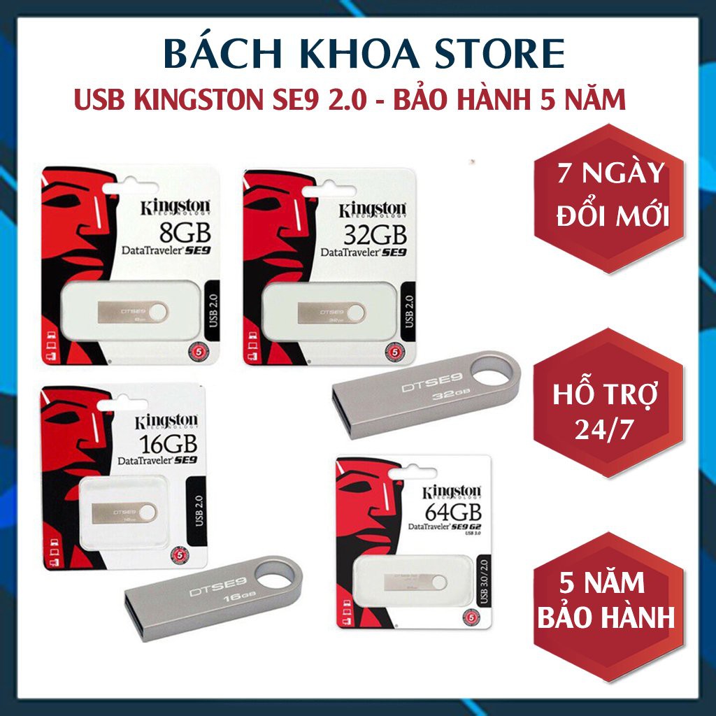 Máy tính & Laptop > Thiết Bị Lưu Trữ > USB & OTG || Usb Kingston SE9 2.0 64GB/32GB/16GB/8GB/4GB thiết kế nhỏ gọn, chống nước, vỏ kim loạiCòn hàng