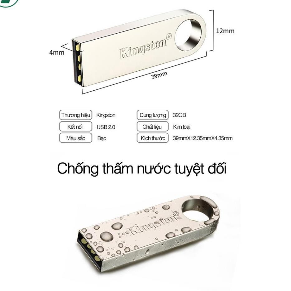 Usb Kingston SE9 2.0 64GB/32GB/16GB/8GB/4GB thiết kế nhỏ gọn, chống nước, vỏ kim loạiTHÔNG TIN CHI TIẾT: