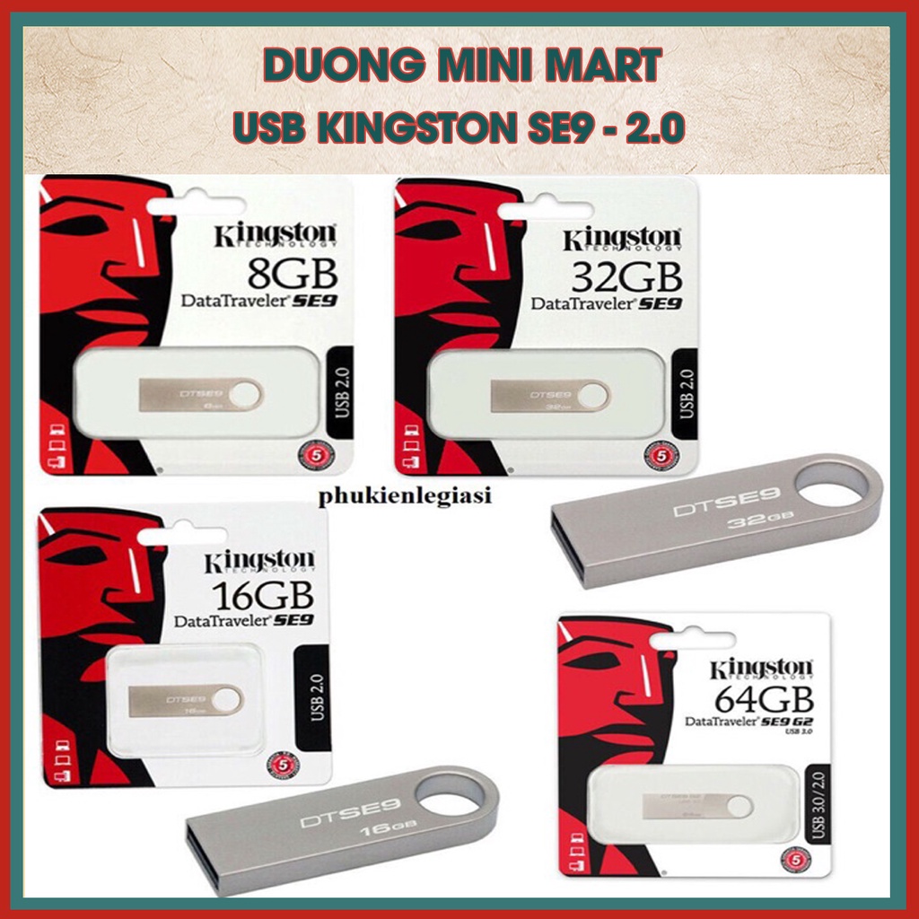 Usb Kingston SE9 64Gb/32Gb/16Gb/8Gb/4Gb/2Gb - USB chống nước 2.0 - Nhỏ Gọn Thời Trang