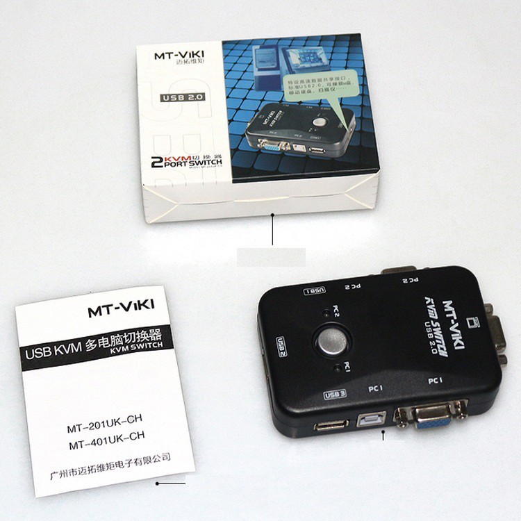 USB KVM Switches 2 ports MT- VIKI (Đen) ( 2 Cây dùng 1 màn hình)Mô tả: Gồm 2 PORT USB 2.0 dùng cho 02 máy tính SWITCH (MT-201UK)