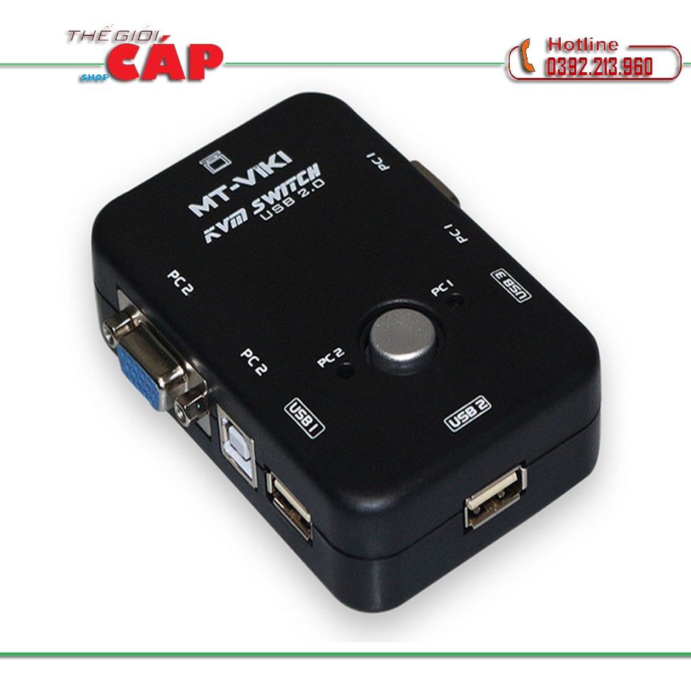 USB KVM Switches 2 ports MT- VIKI (Đen) ( 2 Cây dùng 1 màn hình)Mô tả: Gồm 2 PORT USB 2.0 dùng cho 02 máy tính SWITCH (MT-201UK)