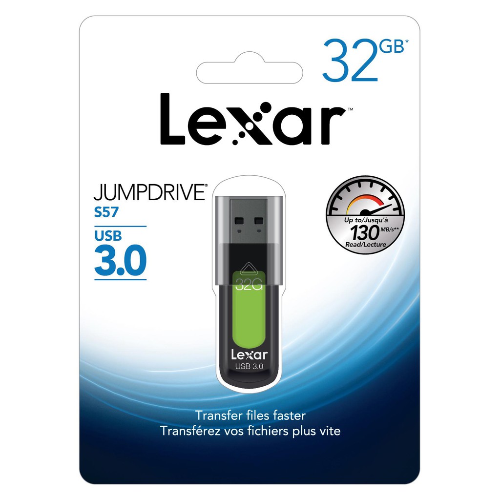 Ổ đĩa flash USB 3.0 hiệu suất cao Lexar JumpDrive S57 cho phép bạn chuyển nhanh chóng và an toàn các ảnh, video và tệp với tốc độ truyền lên tới 130MB / s. * Ổ đĩa có sẵn trong một loạt các dung lượng và màu sắc, và bao gồm một bảo hành ba năm. Tương thích ngược với các thiết bị USB 2.0.