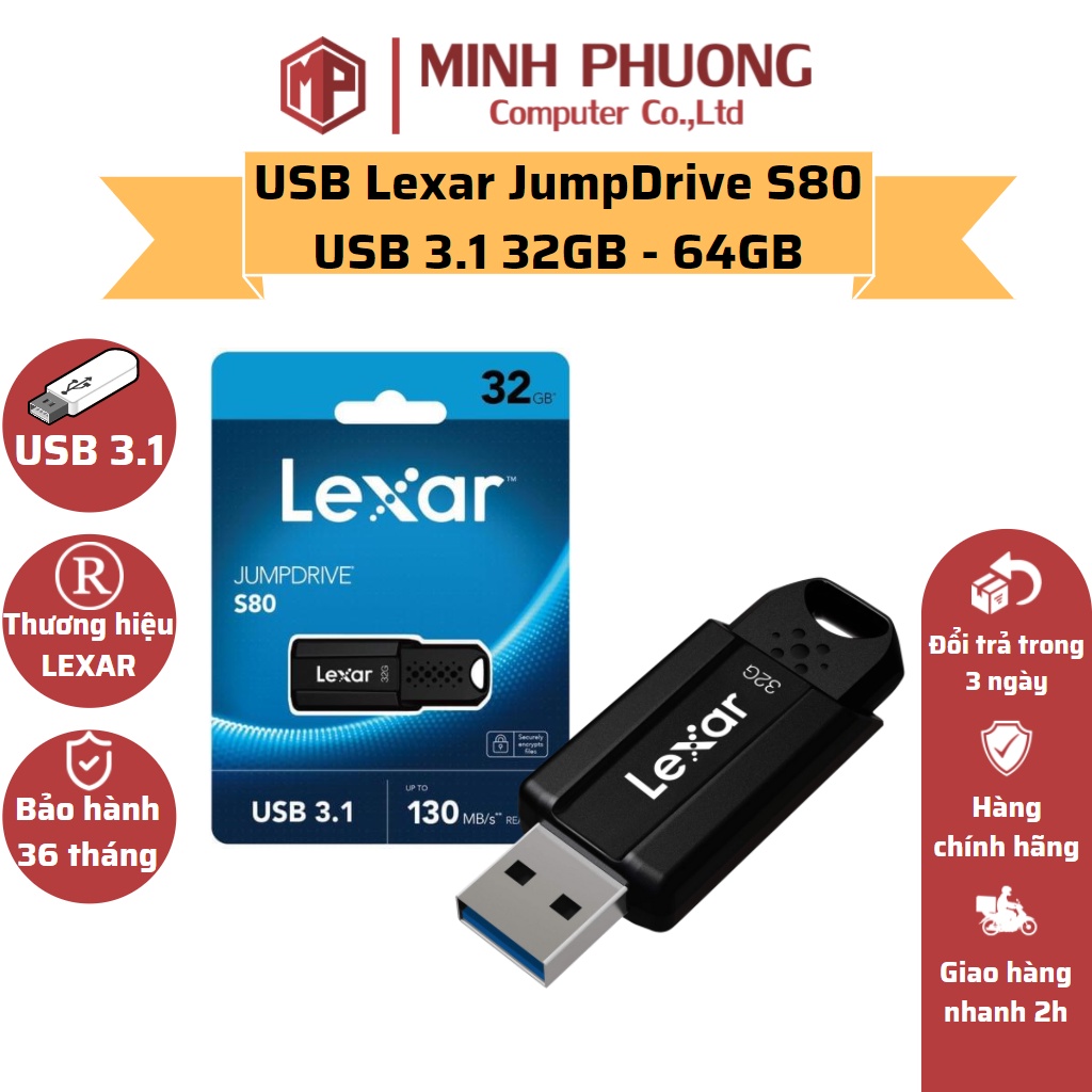 Máy tính & Laptop > Thiết Bị Lưu Trữ > USB & OTG || USB Lexar JumpDrive S80 USB 3.1 32GB - 64GBCòn hàng
