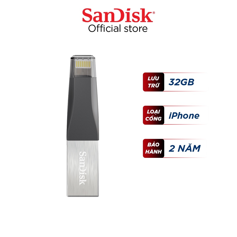 Máy tính & Laptop > Thiết Bị Lưu Trữ > USB & OTG || [Mã ELMALL10 giảm 10% đơn 500K] USB OTG 3.0 SanDisk iXpand mini 32GB cổng lightning for iPhone / iPad (SDIX40N)Còn hàng