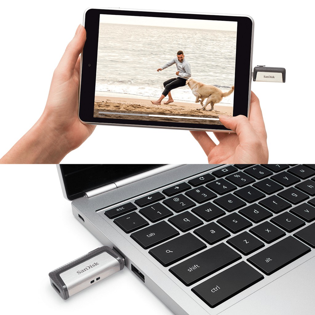 ☼ Chuyển dữ liệu một cách gọn nhẹ và nhanh chóng giữa điện thoại, máy tính bảng và máy tính với thiết kế 2 đầu thông minh từ SanDisk Ultra® Dual Drive USB Type-C™.