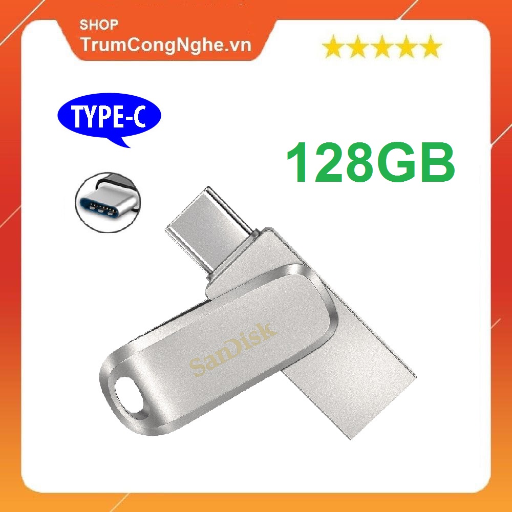 Máy tính & Laptop > Thiết Bị Lưu Trữ > USB & OTG || USB OTG 3.1 Gen 1 SanDisk 128GB SDDDC4 Ultra Dual Drive Luxe USB Type-C upto 150MB/s - Vỏ Full Kim LoạiCòn hàng