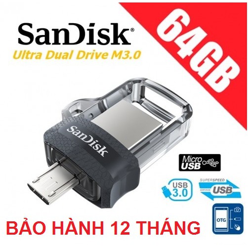 USB OTG 64GB SDisk Ultra Dual Drive M3.0 ( USB 2 Đầu)