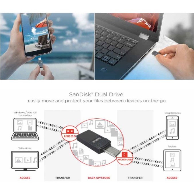 SanDisk Ultra® Dual Drive micro USB==> Bộ nhớ mở rộng dành cho điện thoại/máy tính bảng có cổng micro USB
