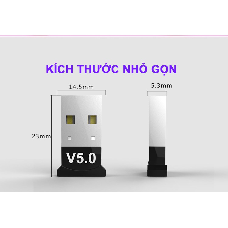 - USB Bluetooth V5.0 này cho phép kết nối dữ liệu không dây giữa máy tính và các thiết bị có hỗ trợ Bluetooth, điện thoại di động, các thiết bị Kỹ thuật số cá nhân, và các thiêt bị khác có thể kết nối không dây với máy tính của bạn.