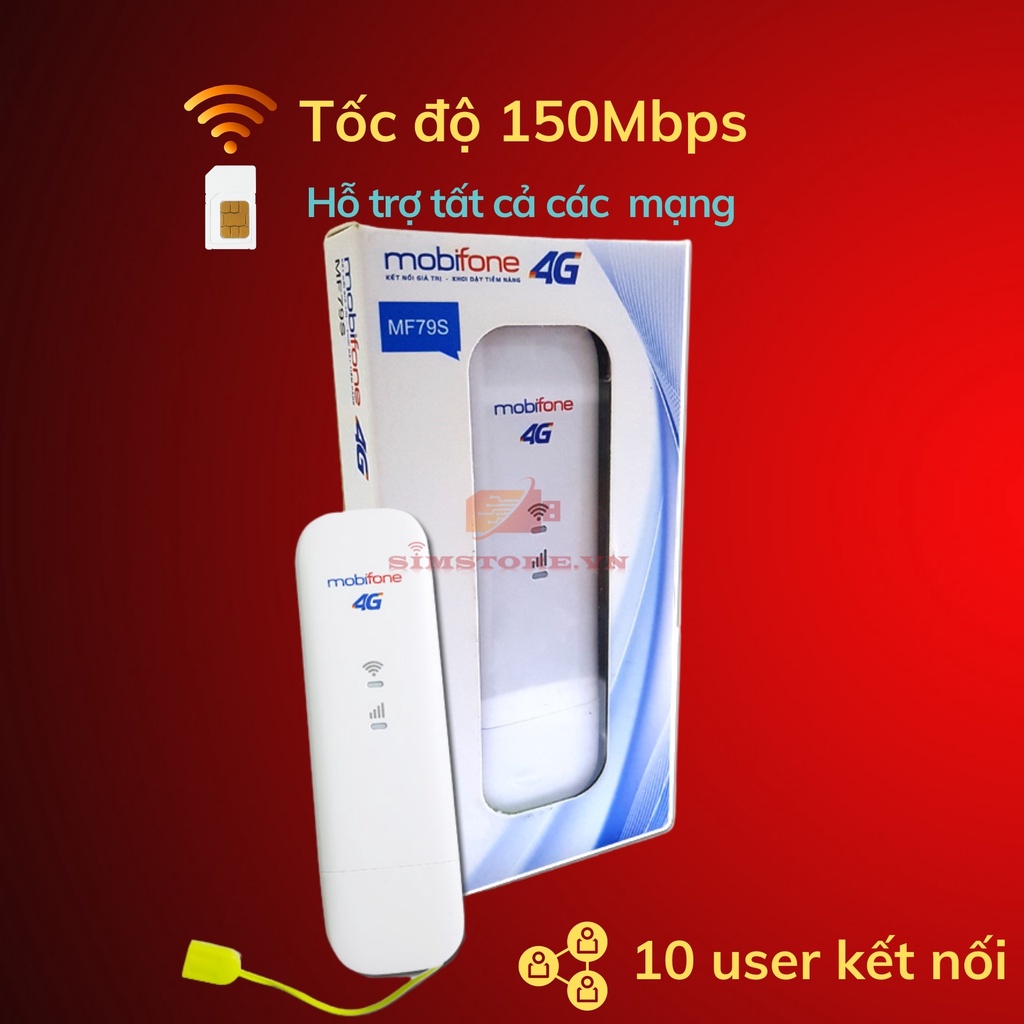 - USB 4G Mobifone MF79 cho phép 8 thiết bị kết nối đồng thời, với chuẩn wifi 802.11b/g/n thông dụng