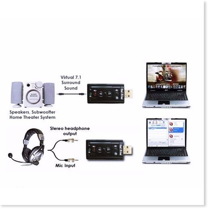 Dùng thay thế cho jack 3.5 của máy tính laptop, kết nối USB dễ tháo lắp, kết nối là hoạt động mà không cần cài driver hay khởi động máy tính.