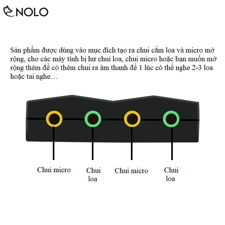 Sản phẩm được dùng vào mục đích tạo ra chui cắm loa và micro mở rộng, cho các máy tính bị hư chui loa, chui micro hoặc bạn muốn mở rộng thêm để có thêm chui ra âm thanh để 1 lúc có thể nghe 2-3 loa hoặc tai nghe…