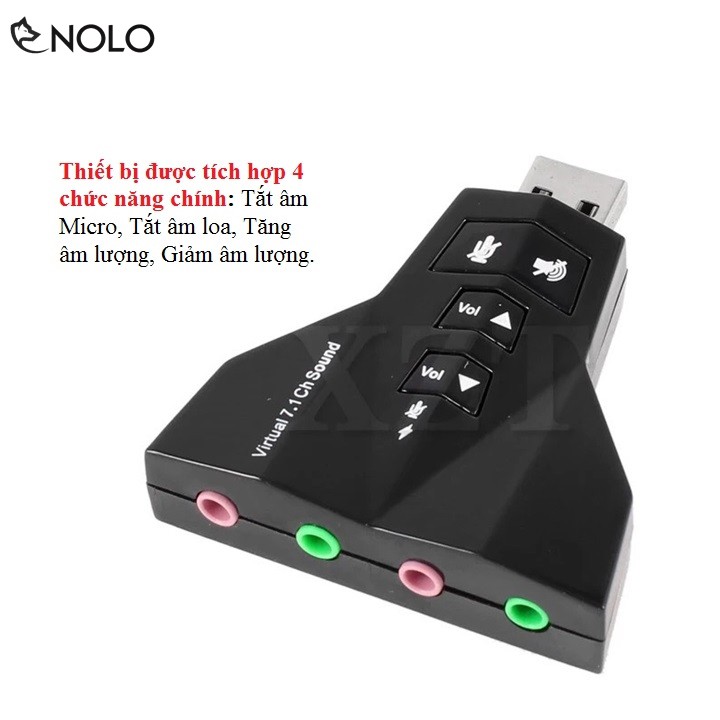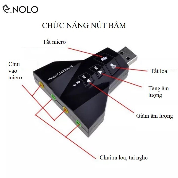 Chức năng mở rộng nút bấm trên usb: tắt âm micro, tắt âm loa, tăng âm lượng, giảm âm lượng.