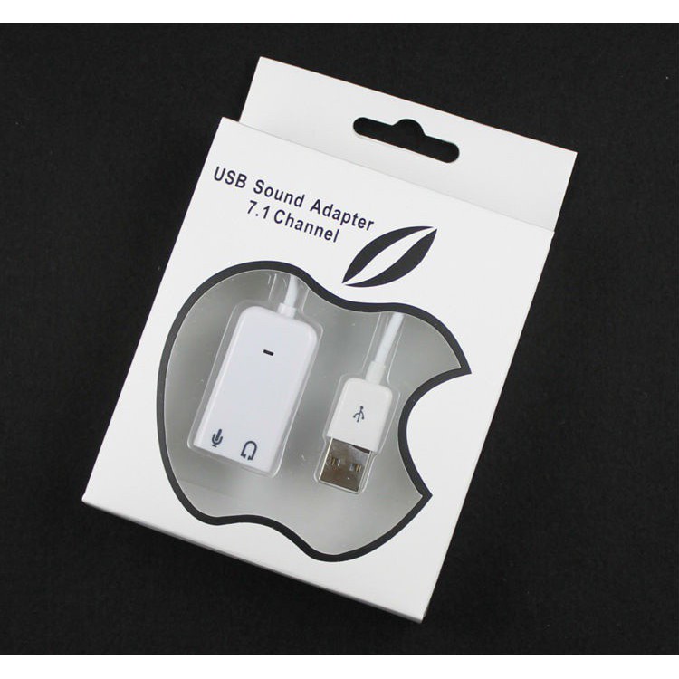 Tên sản phẩm: [Usb ra sound] Usb chuyển thành card âm thanh 7.1 có dây► USB Sound 7.1 phong cachs kiểu dáng Apple có thể sữ dụng cho máy tính bàn hoặc laptop .Chỉ cần cắm đầu USB vào máy là có thể thưởng thức ngay những giai điệu tuyệt vời. Sound card USB chia thành 2 jack cắm cho bạn tiện lợi hơn khi sử dụng headphone trò chuyện, online với người thân, bạn bè