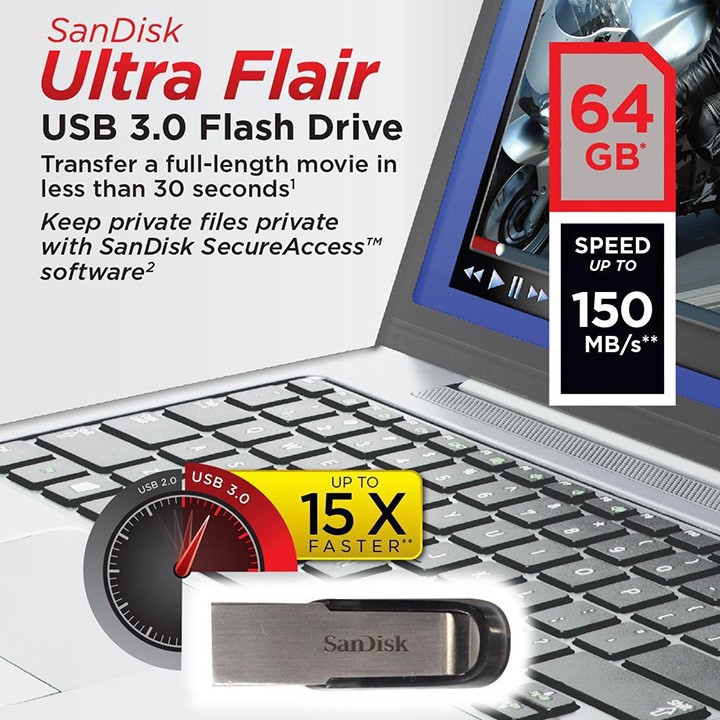 Giới thiệu USB San disk ultra Flair CZ73 128GB 64GB USB 3.0 150MBs