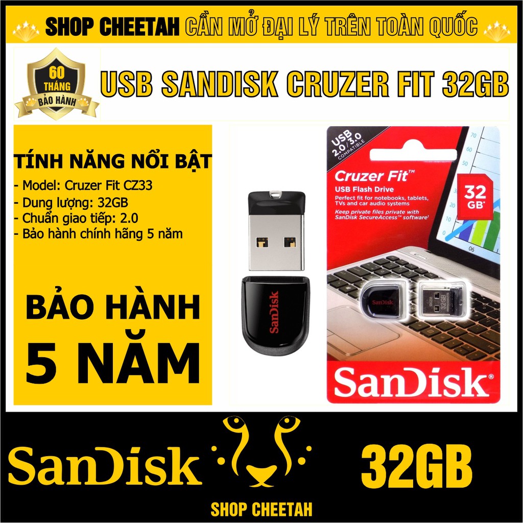 USB SanDisk 32GB Cruzer Fit CZ33 – USB Flash Diver – CHÍNH HÃNG – Bảo hành 5 nămTHÔNG TIN SẢN PHẨM: