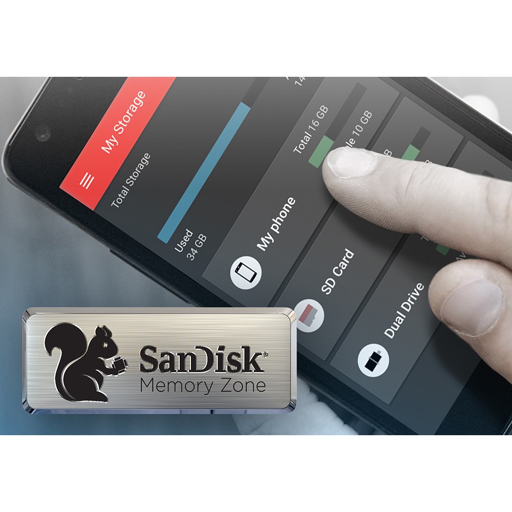 Có sẵn trên cửa hàng Google Play, ứng dụng đi kèm SanDisk Memory Zone cho phép bạn xem, truy cập và sao lưu tất cả các tập tin từ bộ nhớ của điện thoại của bạn. Nó cũng có thể tự động di chuyển tập tin từ thiết bị của bạn vào ổ đĩa của bạn để giải phóng không gian lưu trữ.