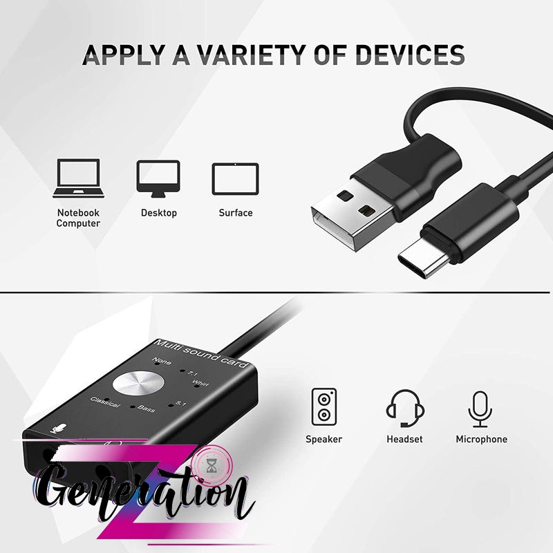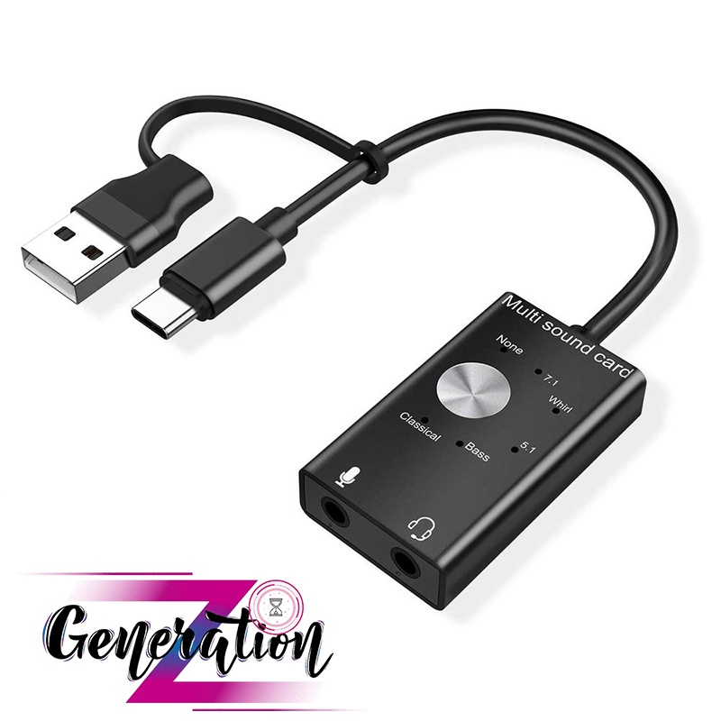 Usb sound 7.1 - bộ chuyển đổi cổng usb + usb Type-C sang Audio và mic