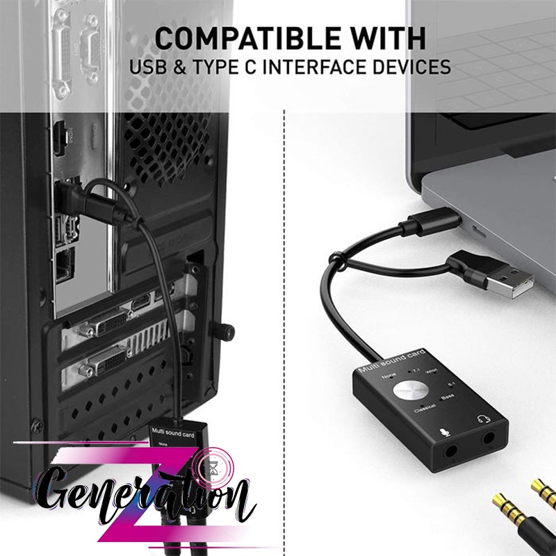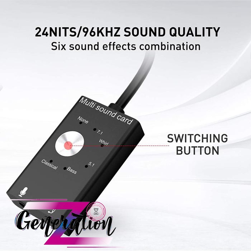 Card âm thanh bên ngoài với âm thanh gốc, 7.1, Whirl, 5.1, bass, hiệu ứng âm thanh Cổ điển. chip giảm tiếng ồn để cung cấp chất lượng âm thanh tốt nhất.