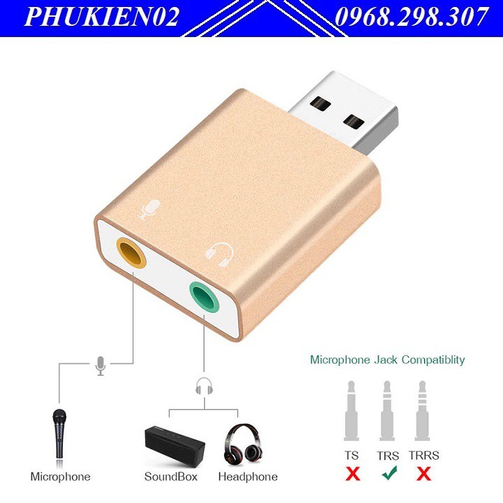 - Sound card USB 7.1 âm thanh 3D vỏ nhôm giúp bạn dễ dàng nghe nhạc, chat voice (yahoo, skype, viber...) trên máy tính. Tín hiệu âm thanh trung thực, tăng cường Bass, âm thanh rõ ràng...