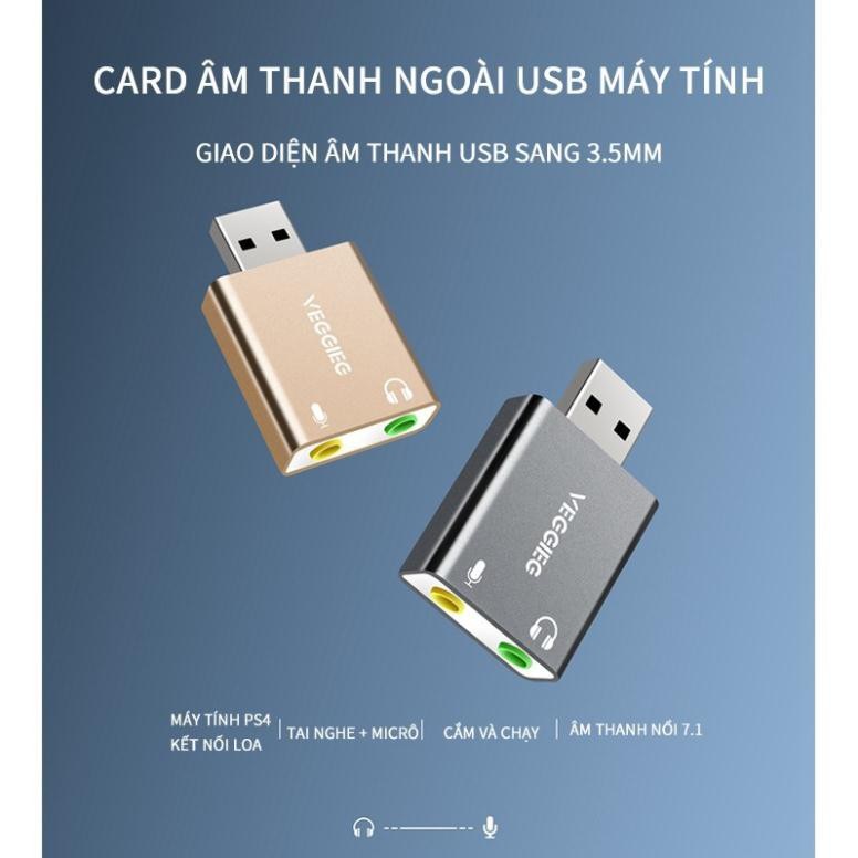 USB Sound card KLH VEGGIEG cho máy tính, laptop âm thanh vòm 7.1 hỗ trợ Mic nghe gọi điện