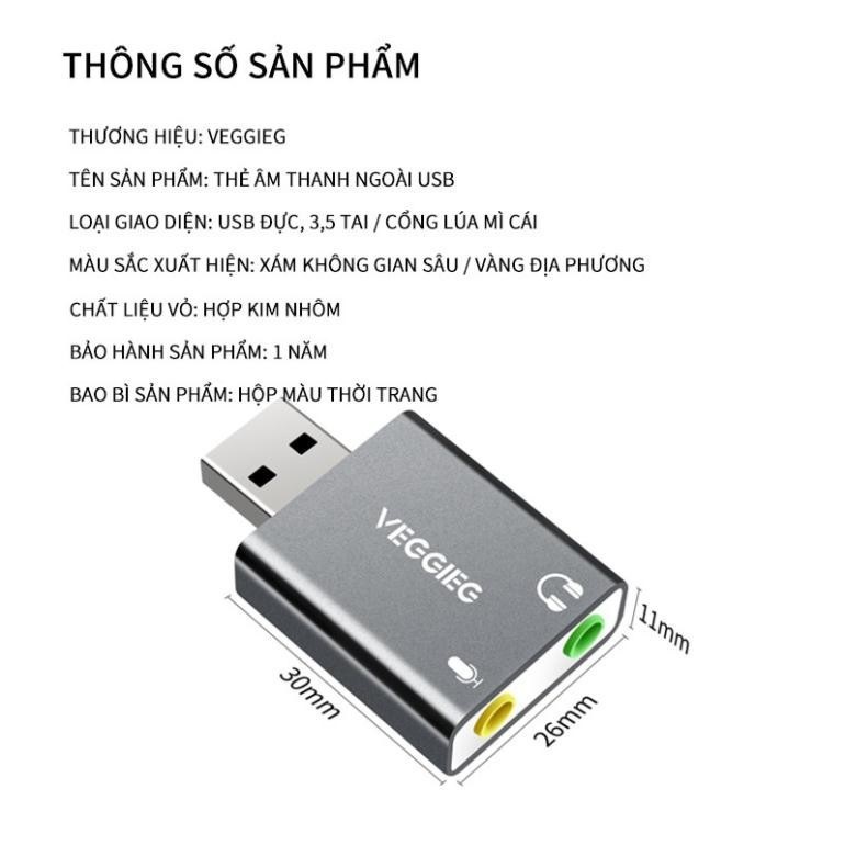 Máy tính & Laptop > Phụ Kiện Máy Tính > Bộ chia cổng USB & Đọc thẻ nhớ || USB Sound card KLH VEGGIEG cho máy tính, laptop âm thanh vòm 7.1 hỗ trợ Mic nghe gọi điệnCòn hàng