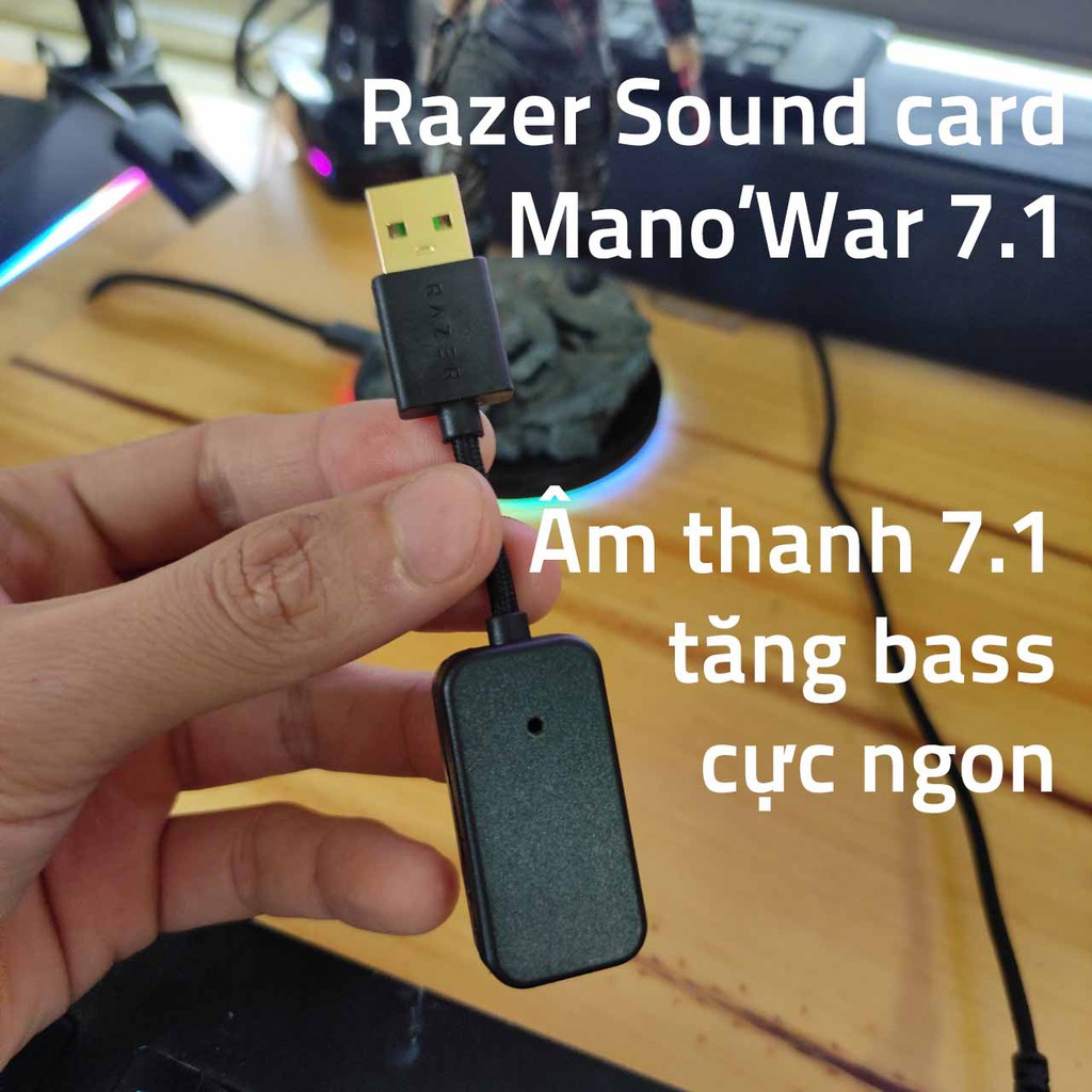 USB sound card Razer Mano'war âm thanh 7.1 3D cho Máy Tính Và Laptop không có led RGB có mic để nói chuyện