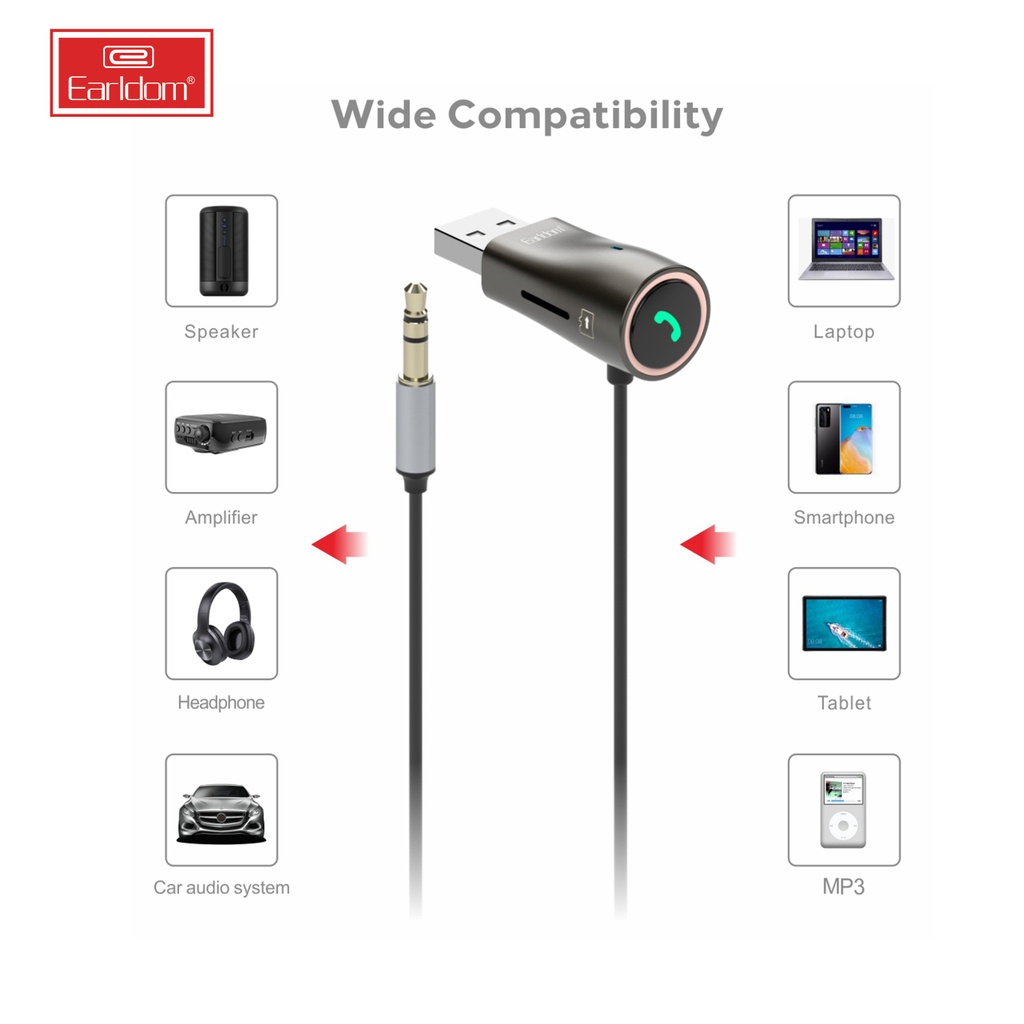 - USB Thu Bluetooth Dành Cho OTO Earldom ET-M65 đây là dòng sản phẩm giúp bạn chuyển đổi và kết nối với dàn loa có trên oto thông qua cổng chuyển đổi âm thanh AUX có trên xe hơi