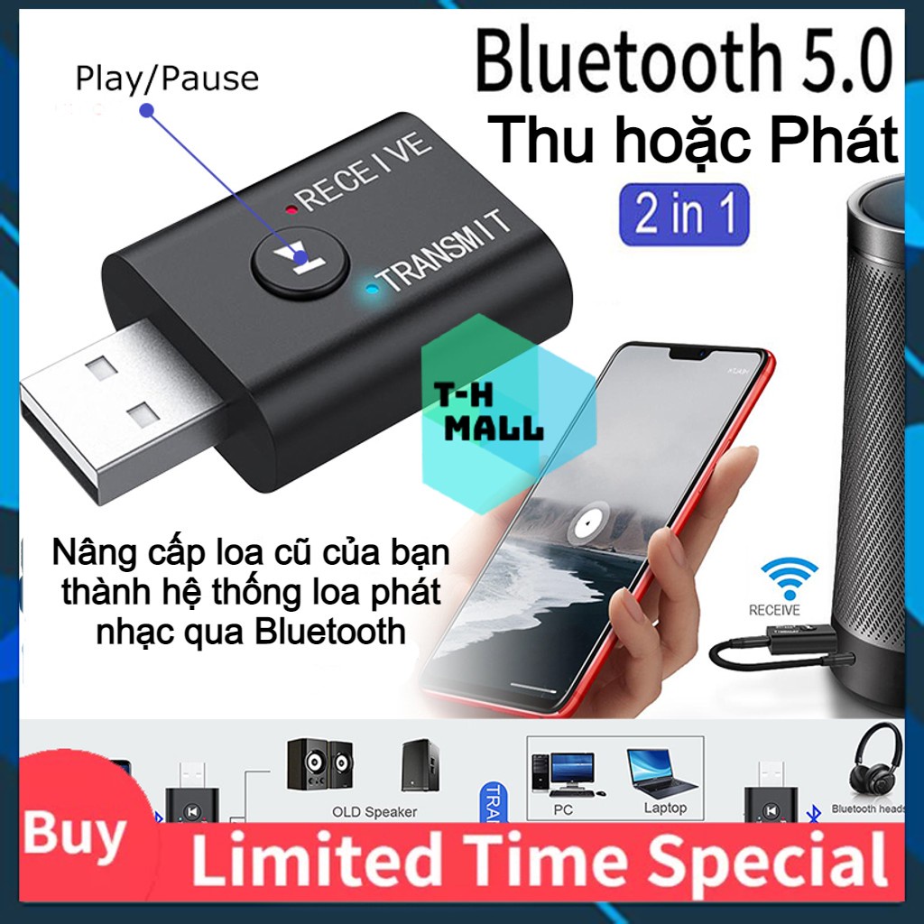 Bộ USB Thu Phát Âm Thanh 2 in 1 Bluetooth 5.0 chuyển đổi 3.5mm AUX sang tín hiệu Bluetooth