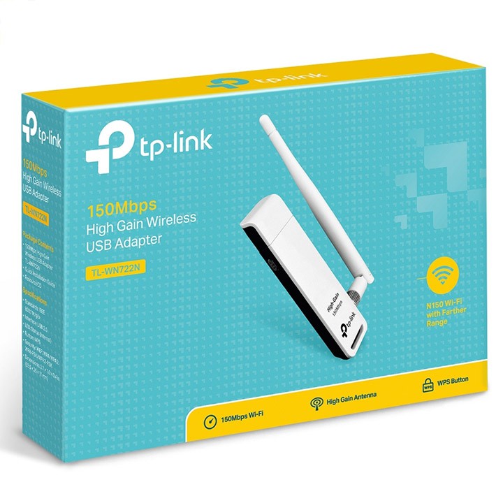 Thiết bị thu phát sóng Wifi TP-LINK TL-WN722NKhông dây chuẩn N tốc độ 150Mbps lý tưởng để xem video, chơi trò chơi trực tuyến và gọi điện trên internet