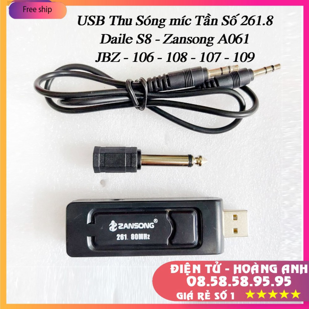 Đặc điểm nổi bật USB thu sóng míc - Chạy Tần Số 261.8HzUSB thu sóng míc thay thế cho mic các dòng Daile S8 - Zansong A061 - JBZ - 106 - 108 - Mic A107 - Mic A 109