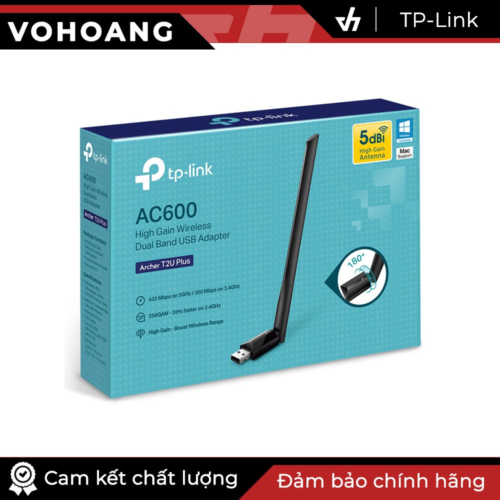 Máy tính & Laptop > Thiết Bị Mạng > Bộ Thu Wifi || USB thu sóng wifi 2 băng tần TP-Link Archer T2U-Plus chuẩn AC600 256-QAMCòn hàng