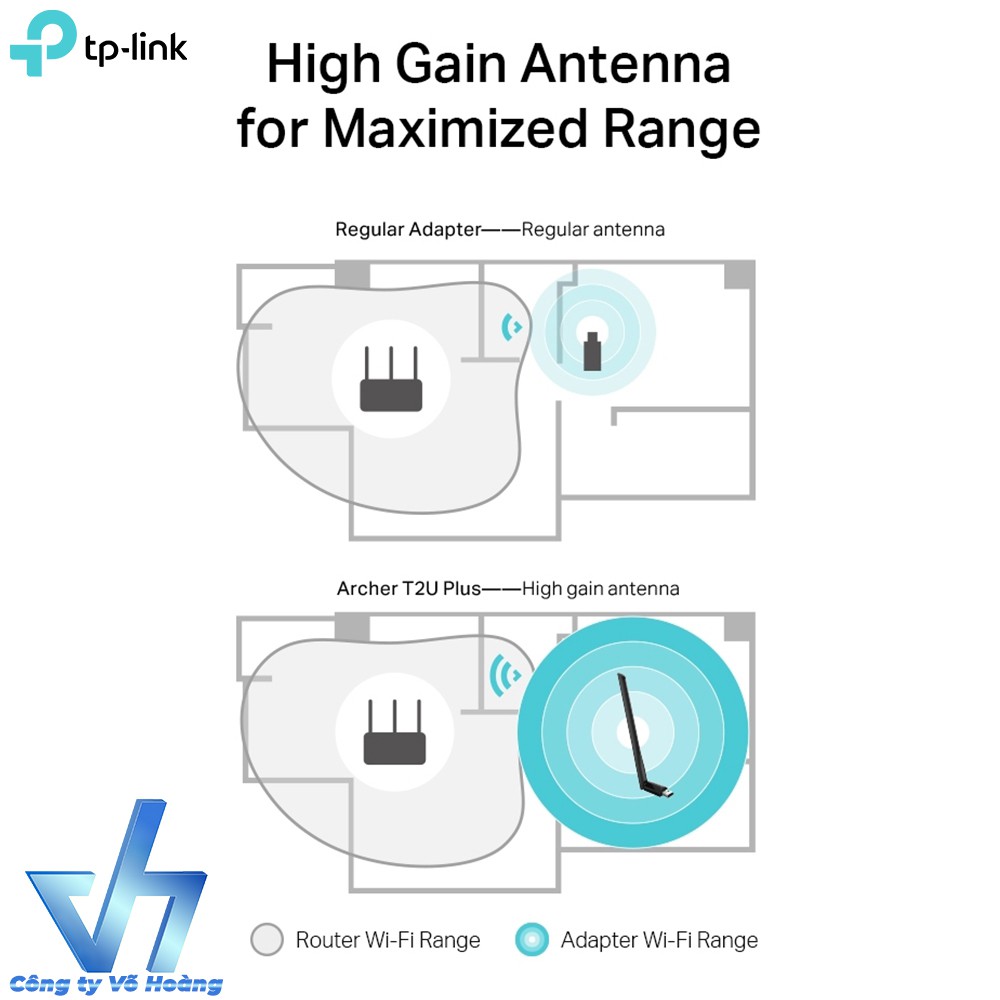 Giới thiệu USB thu sóng wifi 2 băng tần TP-Link Archer T2U-Plus chuẩn AC600 256-QAM
